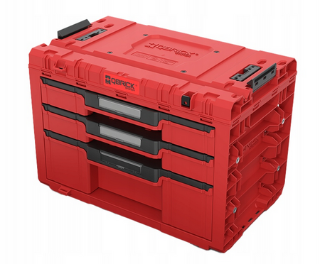 - Qbrick PRIME Drawer 3 Red Ultra HD to wytrzymała skrzynia z trzema szufladami, regulowanymi przegrodami i kompatybilnością PRIME/PRO, idealna do profesjonalnej organizacji narzędzi.